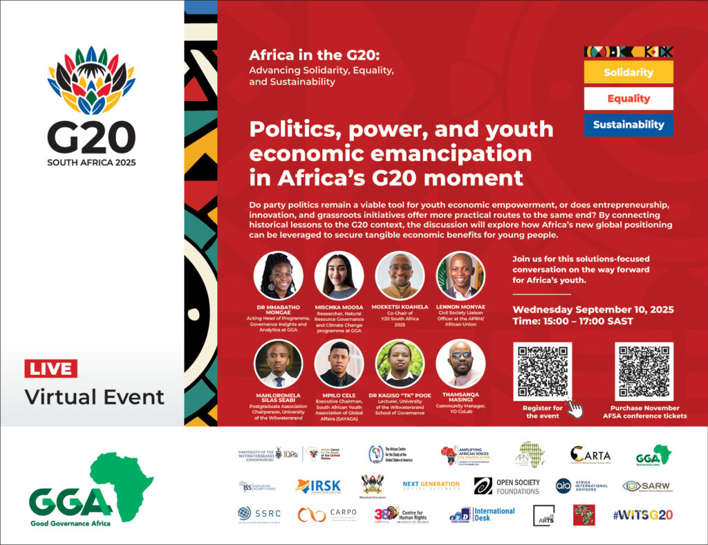 This point was strongly highlighted by the panellists in the second of a series of dialogues being convened by Good Governance Africa (GGA) in partnership with the African Centre for the Study of the United States (ACSUS) at Wits University, ahead of the G20 Summit in November.