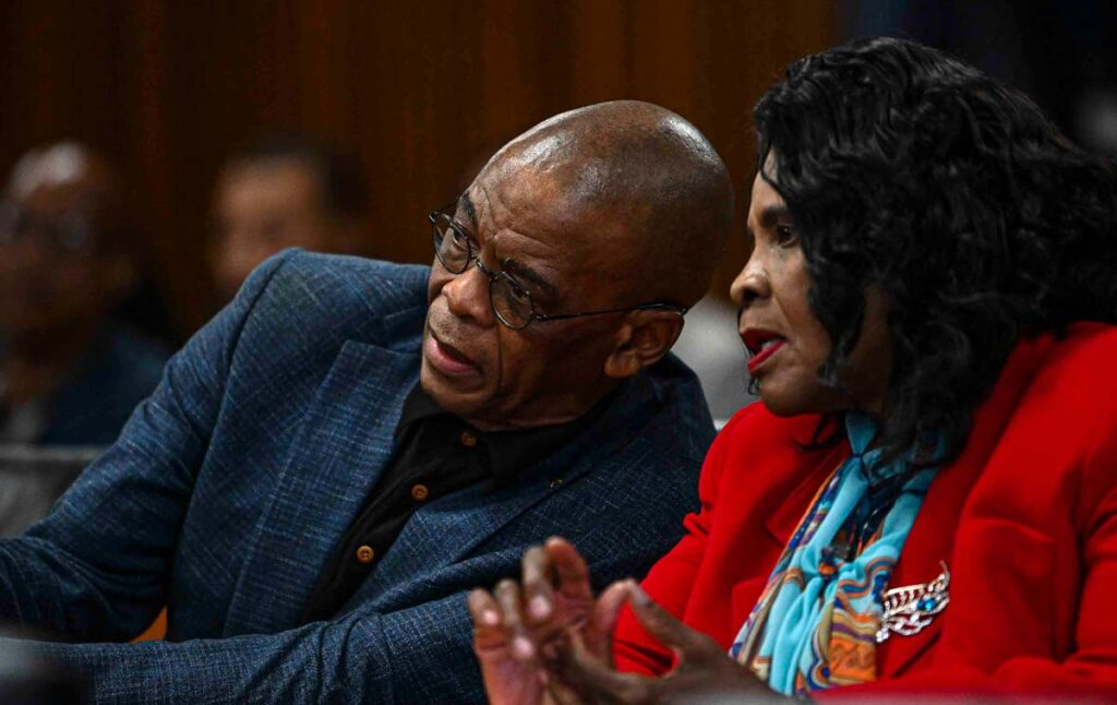 Former Free State Premier, Ace Magashule, speaks to former Mangaung Mayor, Sarah Matawana Olly Mlamleli, at Bloemfontein High Court in South Africa, in April 2025. Photo: Mlungisi Louw/Volksblad/Gallo Images via Getty Images
